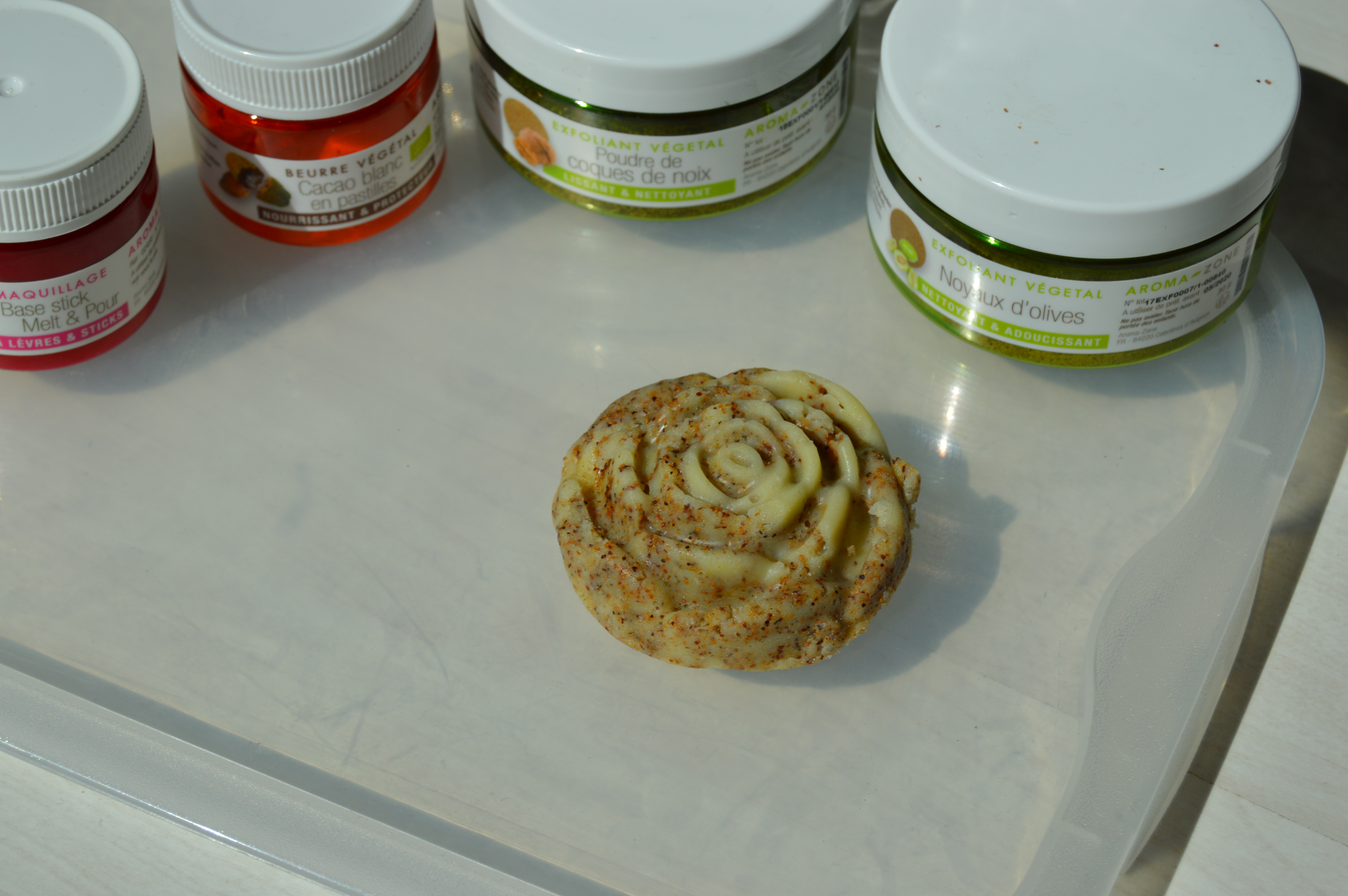 C’est une super barre gommante, très facile à réaliser et l’odeur est pas mal du tout ! Ne pas oublier dans le moule de mettre de l’huile d’olive par exemple pour ne pas trop coller 😉